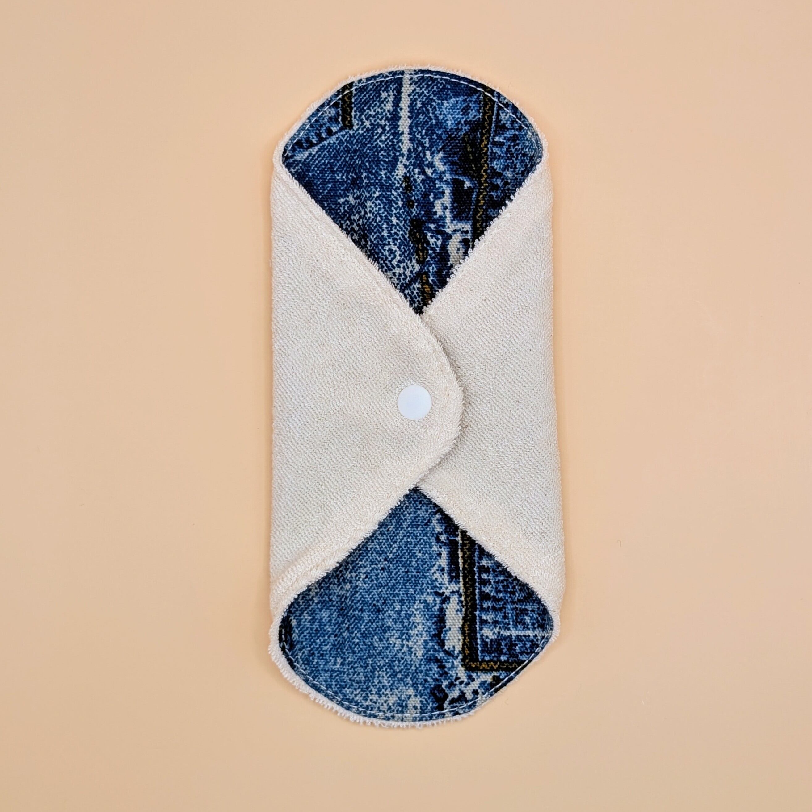 お洒落でカジュアルなデニム柄です。肌に触れる面も縫い糸まで、すべてオーガニックコットンで仕立てた布ライナー。
