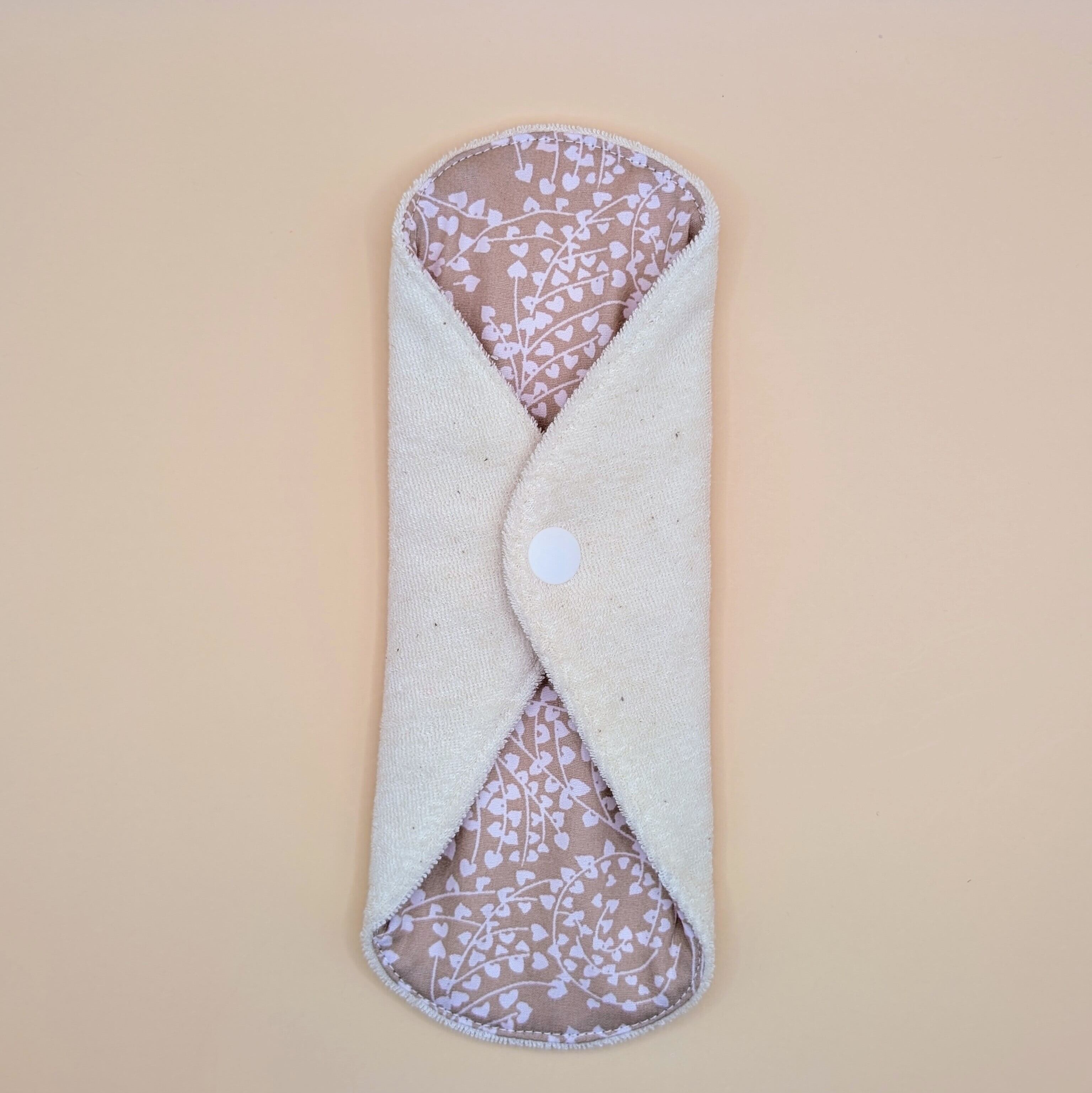 愛らしいハート柄が特徴のこの布ナプキンは、ほんのり温かみのあるベージュトーンで、心に優しいアイテムです。肌面も縫い糸まで、すべてオーガニックコットン。