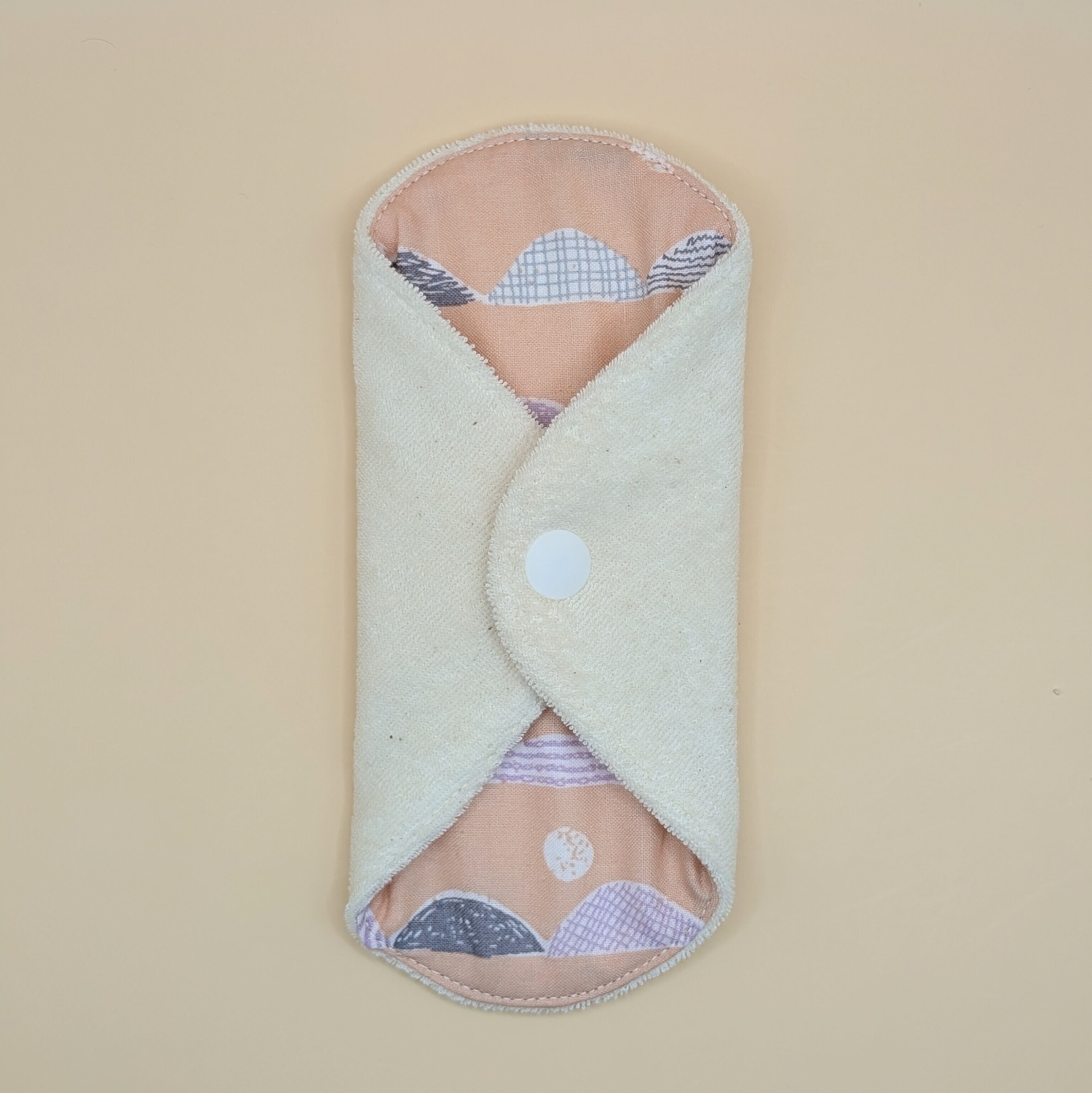 鮮やかなピンクグラフィック柄が目を引くこの布ナプキンは、可愛さと機能性を兼ね備えたデザインが魅力です。肌に触れる部分から縫い糸まで、すべてオーガニックコットンで仕立てたやさしい布ナプキン。