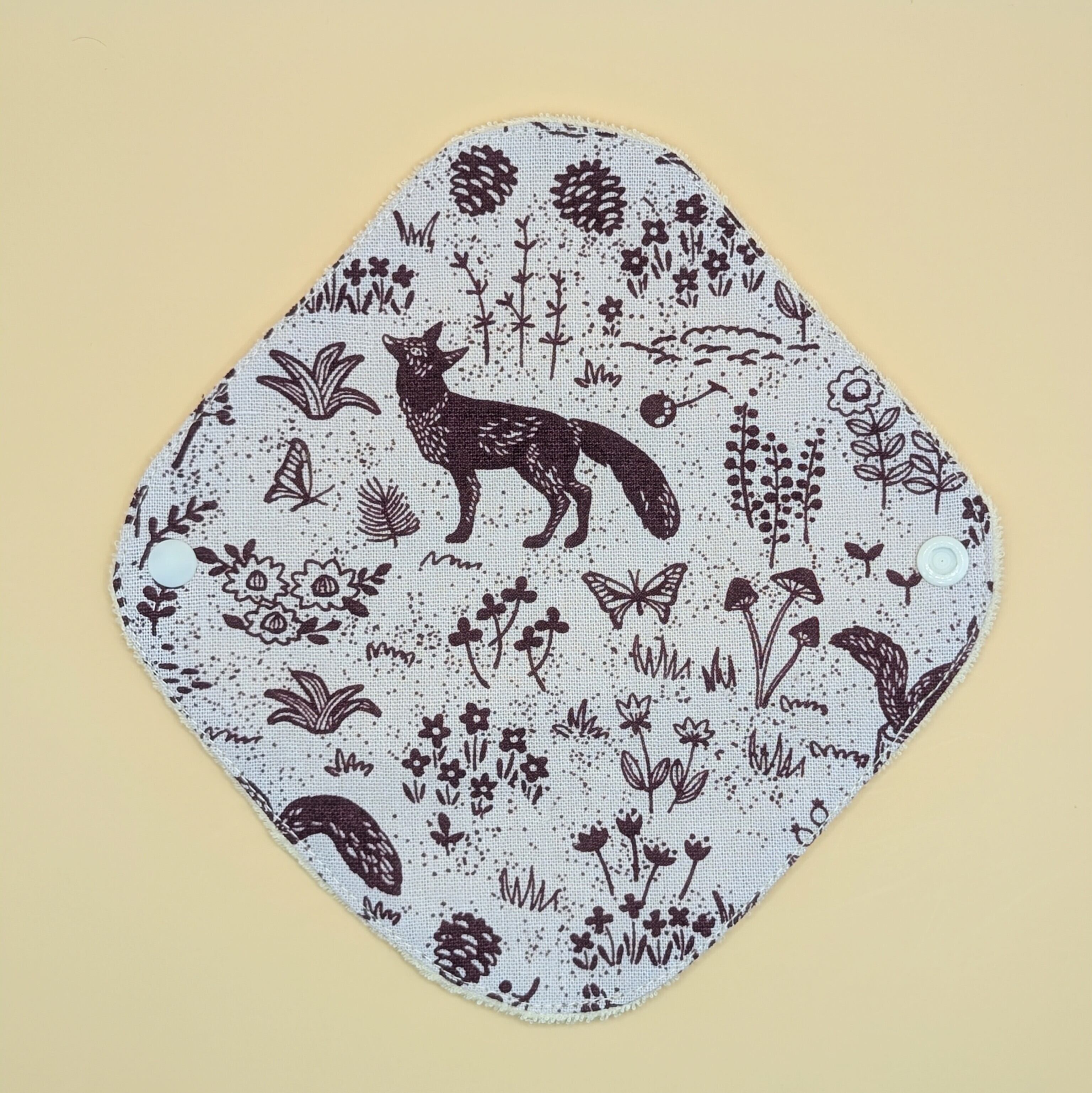 愛らしい動物ときのこが描かれたこの布ナプキンは、機能性とデザインが見事に調和したアイテムです。肌に触れる部分から縫い糸まで、すべてオーガニックコットンで仕立てたやさしい布ナプキン。