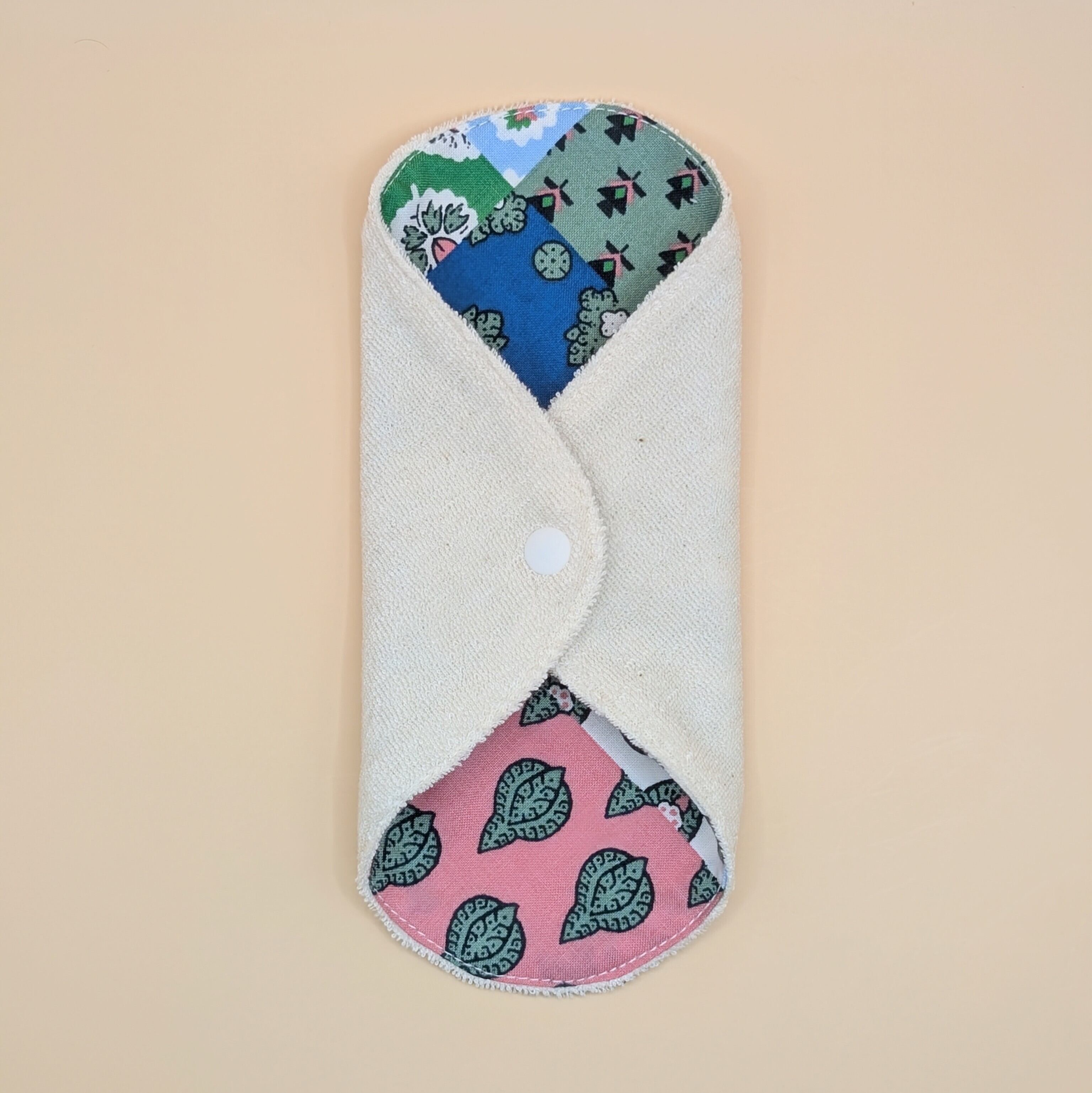 鮮やかなカラフルグラフィック柄が特徴のこの布ナプキンは、機能性とデザインが見事に調和したアイテムです。肌に触れる面から縫い糸まで、すべてオーガニックコットンで仕立てたやさしい布ナプキン。